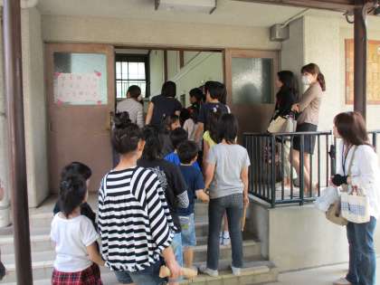 まず最初に,1年生は6年生に手を引かれて入場しました。