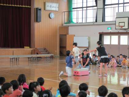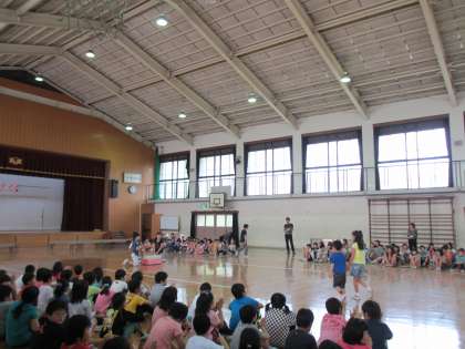 今日の2時間目に体育館で「1年生を迎える会」を行いました。