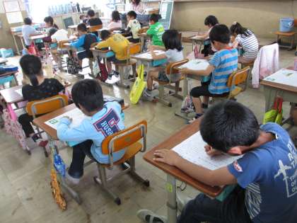 2年1組は,3時間目にテストをしました。