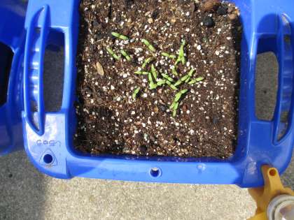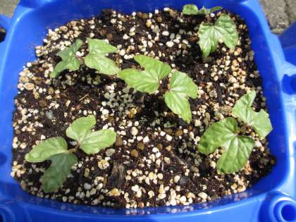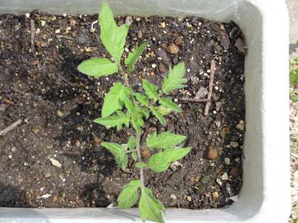 今,1年生は朝顔を育てています。2年生は,ミニトマトの種を植えて,芽が出てきました。6年生は,トマトの苗を植えて育てています。
