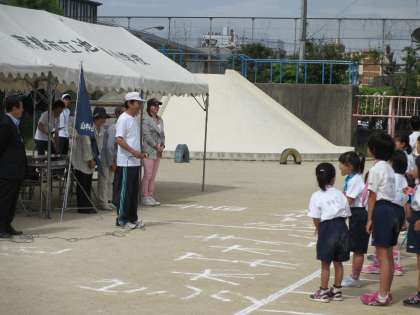 今日は,少年補導主催のドッジボール大会の日です。9時から開会式がありました。