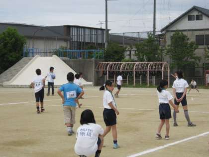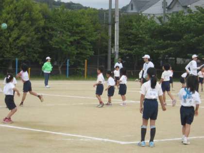 低学年も高学年も楽しくドッジボールをしています。