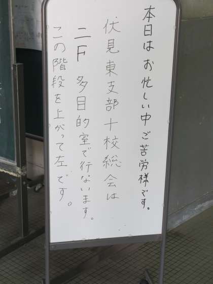 本日10時より,本校多目的室でPTA伏見東支部10校総会が行われています。