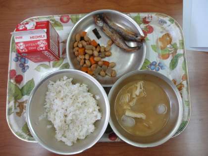 今日の給食は,「麦ごはん・牛乳・ししゃものからあげ・五目煮豆・いものこ汁」でした。ししゃもは,カラッと揚がっていて美味しかったです。