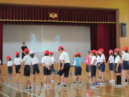 5年生は,2時間目に体育「リズムダンス」をしました。リズムにのって踊りました。