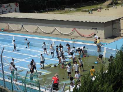 午前中に6年生がプール清掃をしています。頑張ってきれいにしてくれています。