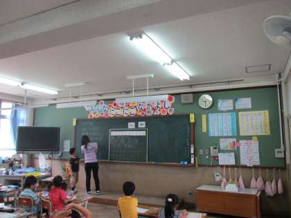 1年2組は,1時間目に算数の学習をしました。「ひき算」の学習です。