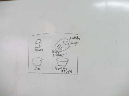 今日は,5年1組がランチルームで給食を食べました。