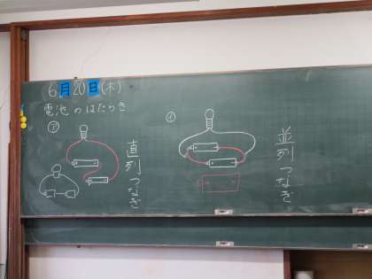 1時間目に,ツルレイシの観察をして,2時間目に「直列つなぎ・並列つなぎ」の実験をしました。