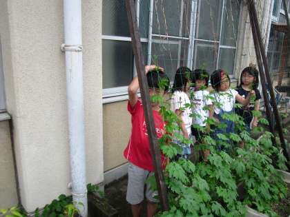 自分の身長を越えているか,比べる児童がたくさんいました。