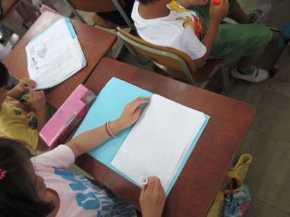 2年生は,3時間目に国語の学習をしました。スイミーで学習してきたプリントを本のようにまとめています。