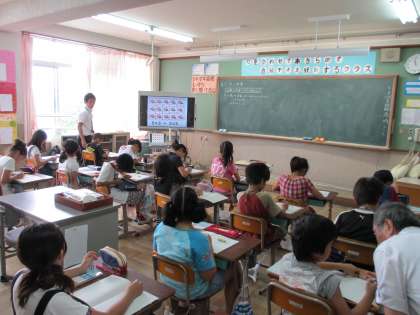5年2組の授業もいろいろな先生に見ていただきました。