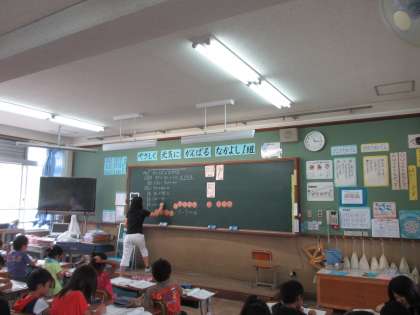 2年1組は3時間目に算数の学習をしました。80+40のように,十の位が繰り上がる計算をしました。