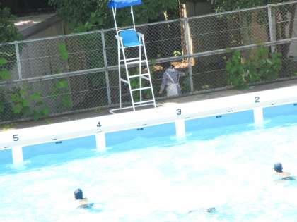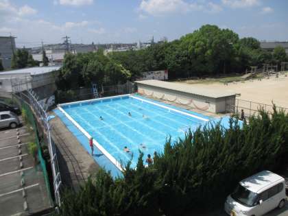 監視台の辺りに蚊がよくとんでいるので,体育倉庫付近の草刈りをしました。