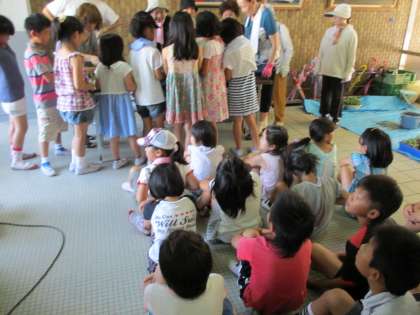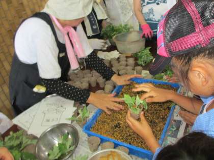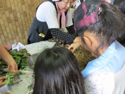 これから菊が育ち,綺麗な花が咲くように水やりをしていきましょうね。