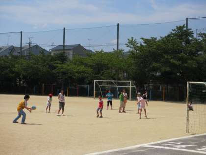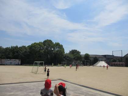 運動場で遊ぶグループと室内で遊ぶグループに分かれました。