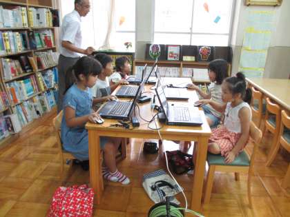 最初はコンピュータルームでしていましたが,エアコンが故障しているみたいなので,図書室に場所を変えました。