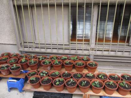 昨日,女性会の方に菊の植え替え第二弾をしていただきました。