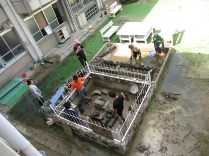 中庭の池・ホットルーム・更衣室などの掃除もしました。