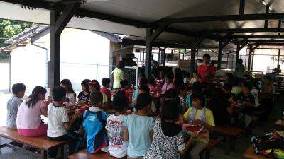 磯観察から帰ってきて、足や体を洗って、お昼ご飯を食べました。昼食後はナイトハイクの下見に行きました。