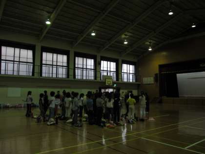 京都は雨が降ったり止んだりの日でしたので,体育館で解散式を行いました。