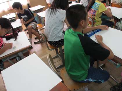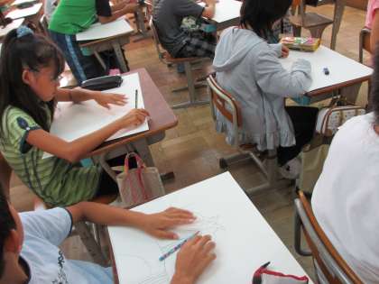 6年1組は1・2時間目,6年2組は3・4時間目に図工の学習をしました。お話の絵を描き始めています。