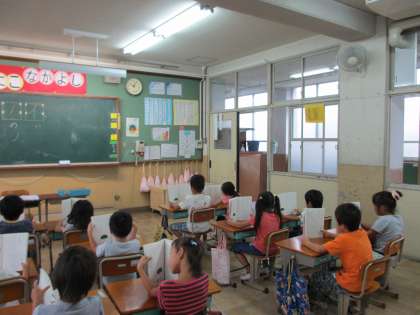 1年1組は,2時間目に国語,3時間目に体育をしました。