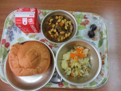 今日の給食は,「バターうずまきパン・牛乳・チリコンカーン・野菜のホットマリネ・ぶどう」です。野菜のホットマリネには,バジルも入っていました。