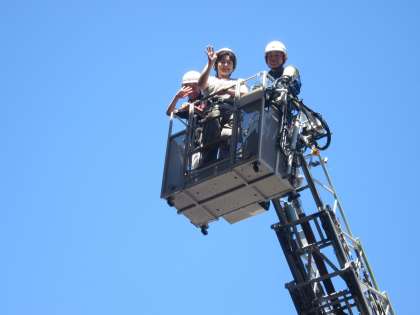 はしご車で35mの高さにのせてもらったりしました。