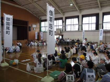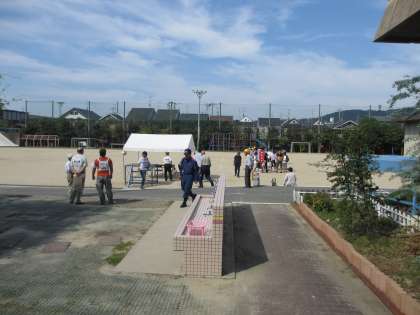 総合防災訓練が,池田東小学校でありました。グラウンドに集合してから,体育館に移動しました。