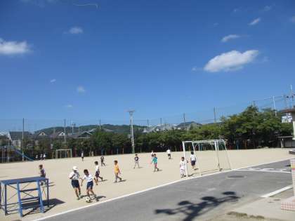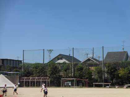 子ども達は,秋晴れの空の下,元気に遊んでいます。