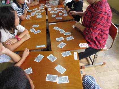部屋の中で,「トランプ遊び」や「椅子取りゲーム」や「フルーツバスケット」をしました。外で,鬼ごっこやドッジボールをしたグループもあります。