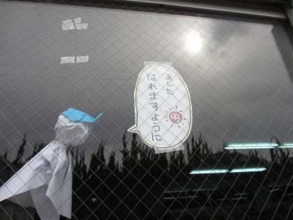 明日運動会を行うかどうかは,19日午前7時頃に校門に掲示し,このHPにも載せます。PTAのメールでも配信します。