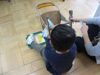 3・4年は,4時間目に算数をしたり椅子の脚の泥を取ったりしました。