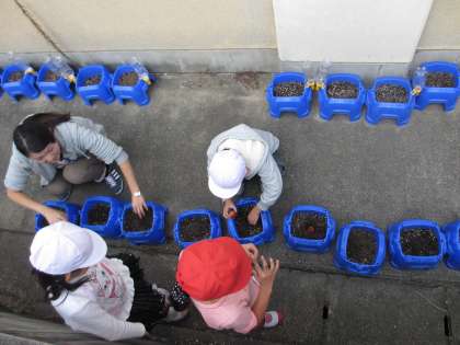 チューリップの球根を観察して植木鉢に植えました。何色の花が咲くか楽しみですね。