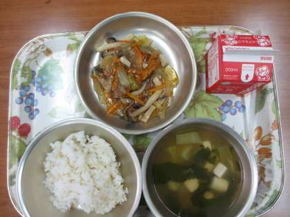 今日の給食は,「玄米ご飯・牛乳・さばの甘酢あんかけ・豆腐と青菜のスープ」です。揚げたさばにたまねぎ・にんじん・しめじ・エリンギ・白ねぎの入った甘酢がかけてあってとても美味しいです。