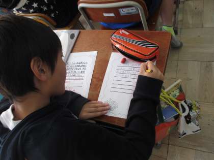 4年1組は,3時間目に理科の学習をしました。月の動きについて学習中です。