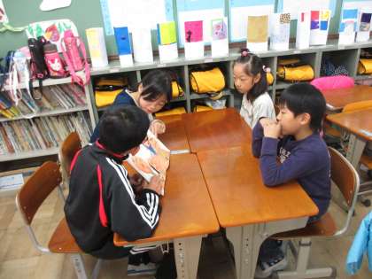 フレンドリー活動では,6年生が1年生に,5年生が2年生に,4年生が3年生に読み聞かせをしました。