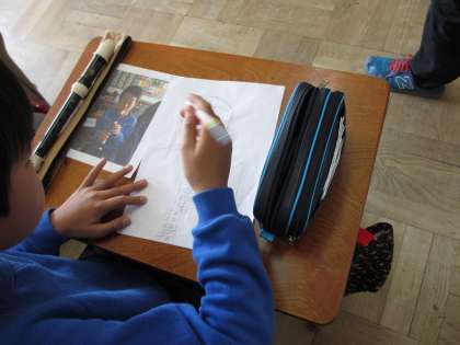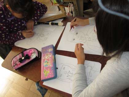 5年2組は,3時間目に図工の学習をしました。版画の学習をしています。