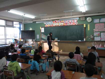 1年生は,月曜日の朝に「朝学習」や「朝の会」をして,先生のお話を聞いています。