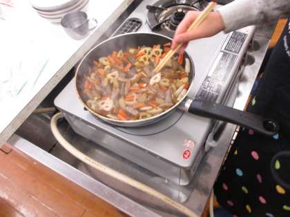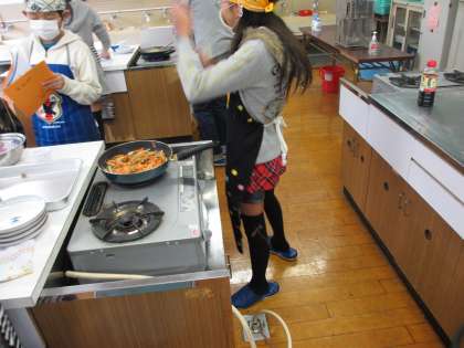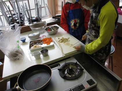 6年2組は,1・2時間目に家庭科で調理実習をしました。