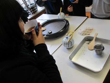 緑茶をホットプレートでいってほうじ茶にしました。香ばしい良い香りが立ち込めました。