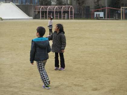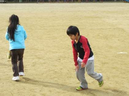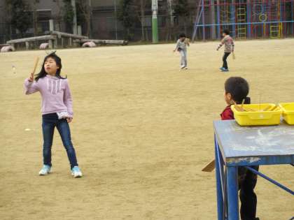 はねつきや竹トンボで遊びましたが,なかなかうまくいかず,苦労しながら頑張っていました。