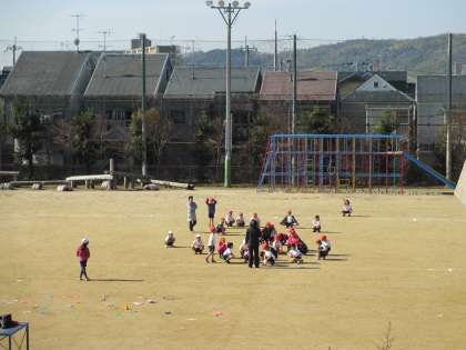 今日は,いつもより暖かい日でしたので,運動場で元気よく活動できました。