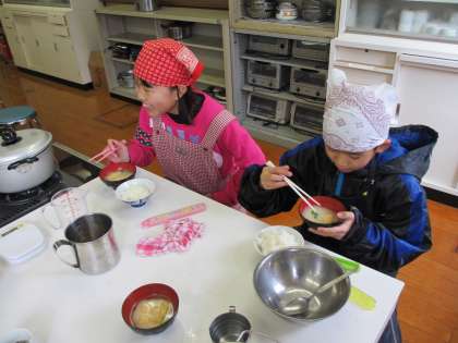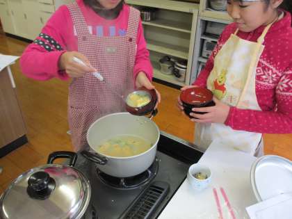 家庭科室で,ごはんとみそ汁を作りました。
