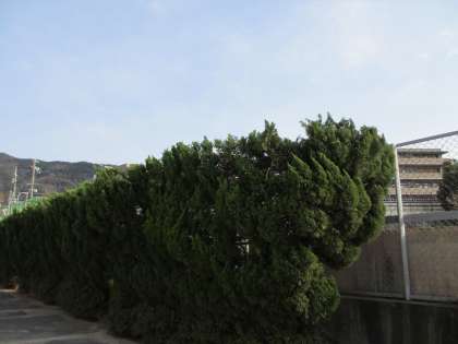 プール横のカイヅカイブキを剪定しました。