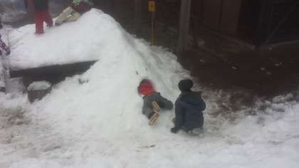 6年卒業遠足 雪遊び・・・穴掘り