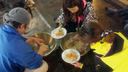 6年生は北山民家にきて、もちつきをしています。