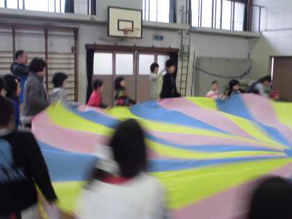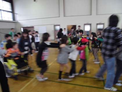 伏見東支部の育成のお友達が集まって,「春のふれんどタイム」が本校の体育館で実施されました。みんなでバルーンを作ったり,かもつ列車をしたり,「歌えバンバン」を歌ったりしました。