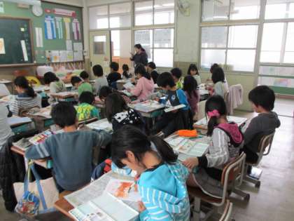 4年生では,自画像を描いています。今日は,肌の色を塗るために,何種類もの色を混ぜて,色づくりをしました。